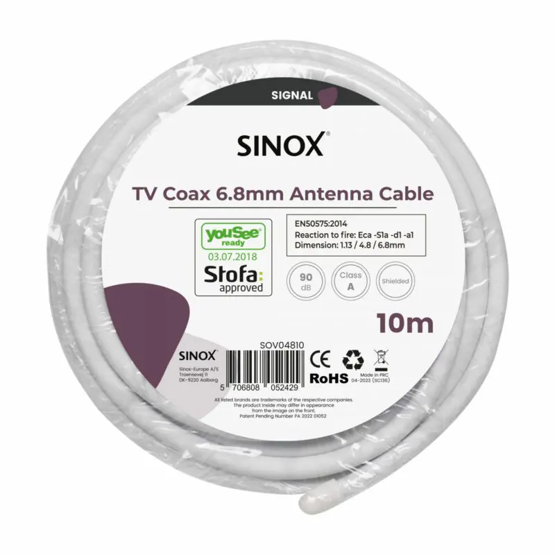 Sinox antennekabel bruges til at overføre lyd og billed mellem fx vægdåse og TV.